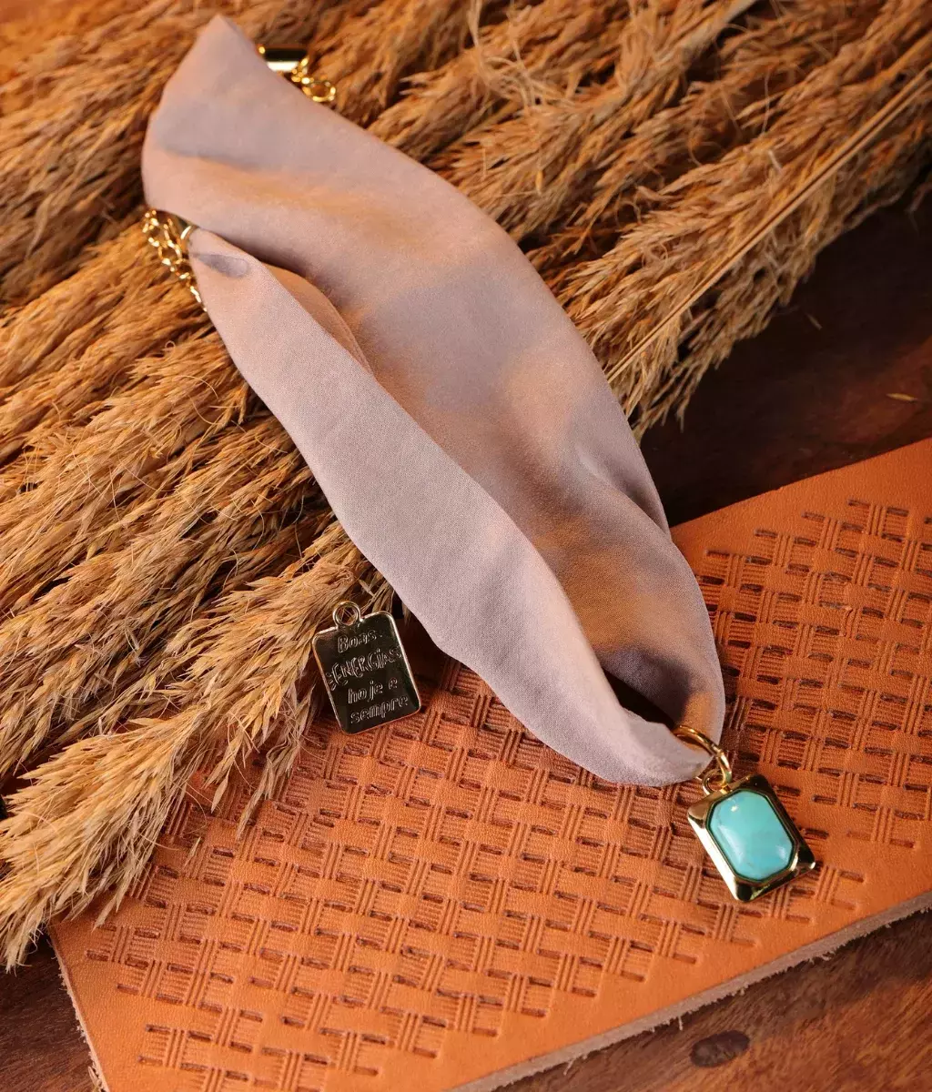 Elegância e estilo se unem neste colar de lenço na tonalidade marrom, a cor que domina as tendências atuais. Seu pingente turquesa traz um toque vibrante e cheio de significado, com uma mensagem especial gravada atrás para você carregar perto do coração. Um acessório único que transforma qualquer look com sofisticação e personalidade.