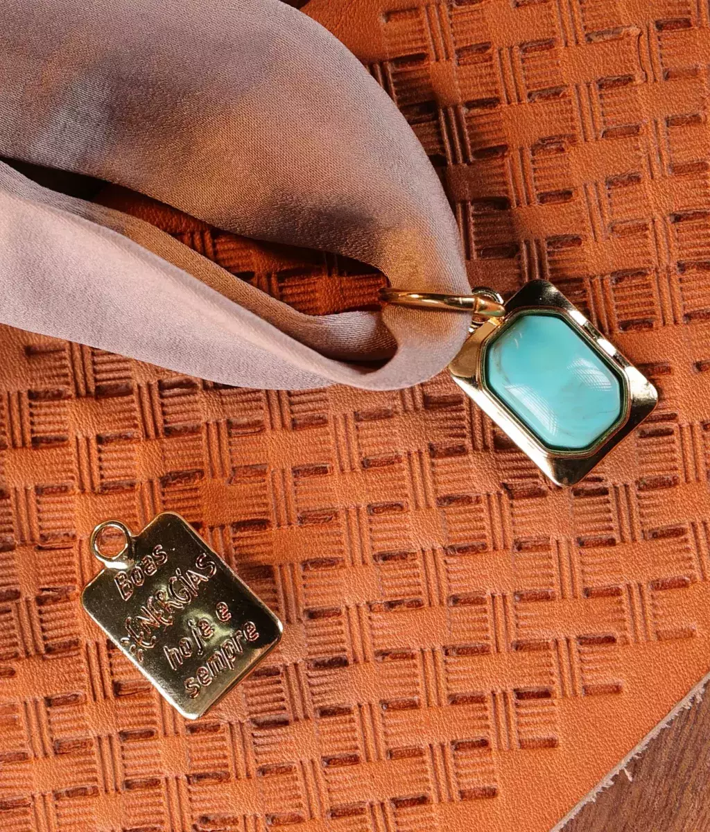 Elegância e estilo se unem neste colar de lenço na tonalidade marrom, a cor que domina as tendências atuais. Seu pingente turquesa traz um toque vibrante e cheio de significado, com uma mensagem especial gravada atrás para você carregar perto do coração. Um acessório único que transforma qualquer look com sofisticação e personalidade.