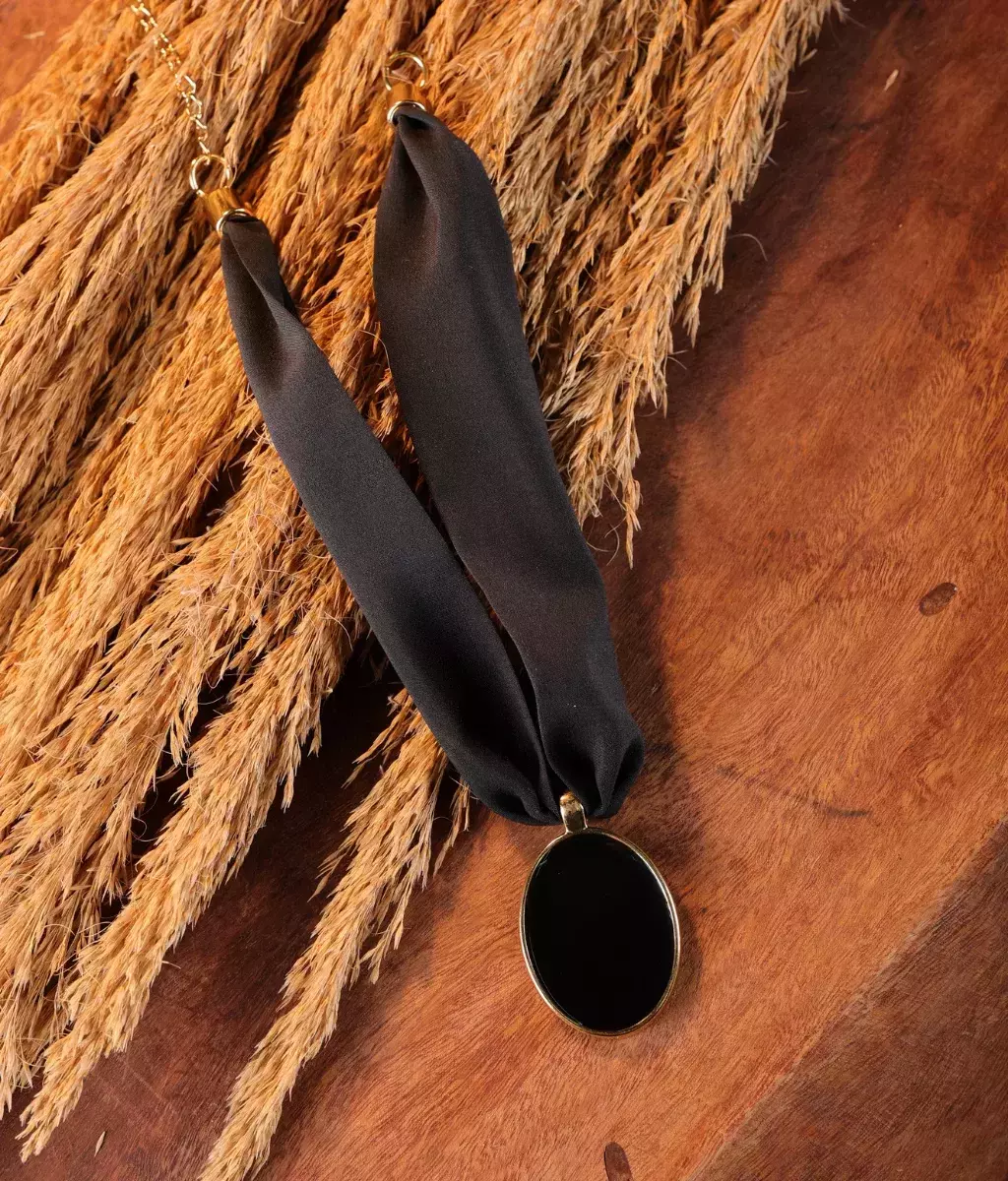 Esse colar é para quem prefere o impacto silencioso: o detalhe certo, na medida exata. A pedra esmaltada em preto profundo conversa com tudo, mas não compete com nada. O formato oval traz equilíbrio, enquanto o tecido leve garante conforto e movimento. É minimalista, mas não básico. Atemporal, mas nada óbvio. Use quando quiser somar presença ao look — sem esforço, sem exagero, só estilo.